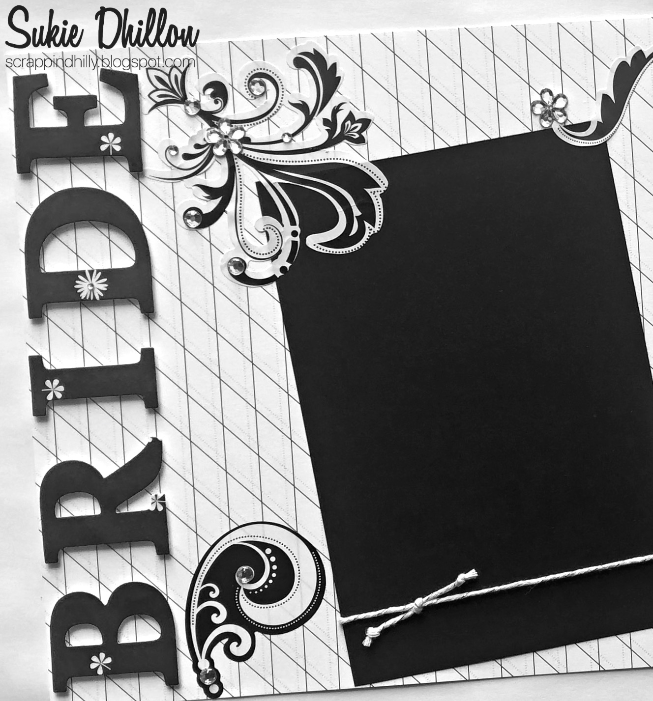 I cut out the bride/groom title with the Momenta Alphabet Uppercase Serif dies and adhered them to the page with some pop dots for added dimension.
