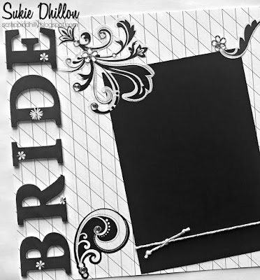 I added some flourish Momenta wedding stickers to each of the pages. The flourishes were accented with some bling stickers. I added a bit of May Arts cording to each of the photo mats which finished off my layout page.