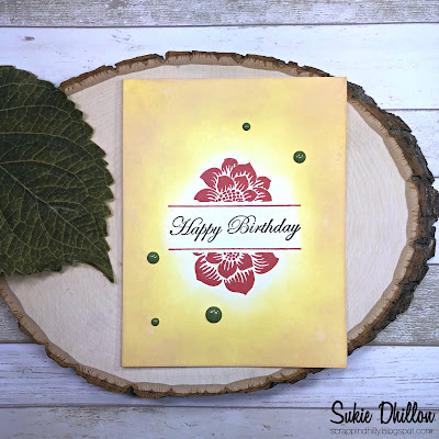 The beautiful color combination in the butterflies had me working with my Oxide Inks in no time. I used several colors to create the background and layered it with the Momenta Intricate Flower die.